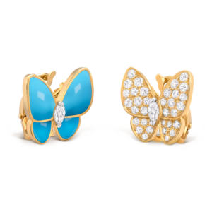 Each earring is crafted in 18K yellow gold, meticulously finished with the signature beaded-gold contour that reflects Van Cleef & Arpels’ unparalleled craftsmanship. The motifs are set with natural mother-of-pearl and onyx stones, selected for their luminous depth and gentle sheen.