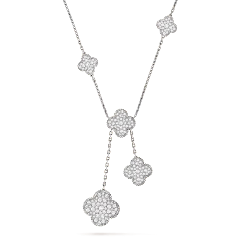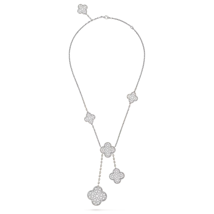 The Magic Alhambra necklace with 6 motifs is a harmonious blend of iconic design and luxurious craftsmanship. Its symbolic motifs and refined details make it a meaningful and timeless addition to any jewelry collection.