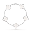 Each four-leaf clover motif is framed by the collection’s iconic beaded edge. This distinctive detail adds depth, texture, and a sculptural dimension, enhancing the bracelet’s instantly recognizable character.
