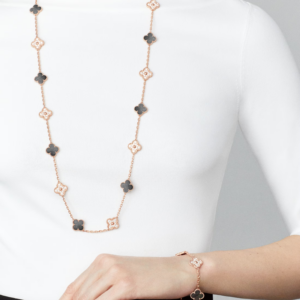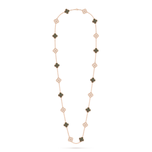 Elegant, iconic, and beautifully crafted, the Vintage Alhambra long necklace with 20 motifs is a timeless expression of luxury and good fortune.