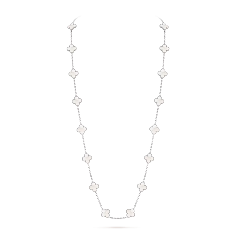 The Vintage Alhambra long necklace with 20 motifs is an iconic expression of elegance, craftsmanship, and lasting beauty, making it a standout addition to any jewelry collection.
