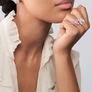 The blossom is finished with the Maison’s iconic beaded gold contour, meticulously hand-polished to enhance its soft shine. Light, feminine, and full of poetic charm, the earrings dance gently with every movement, adding a joyful note of color and life to any look.