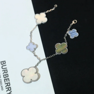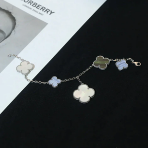 Each motif is crafted in a distinct size, creating a graceful balance between delicacy and presence. This variation brings visual rhythm to the bracelet, allowing every motif to shine in its own unique way.