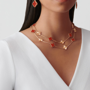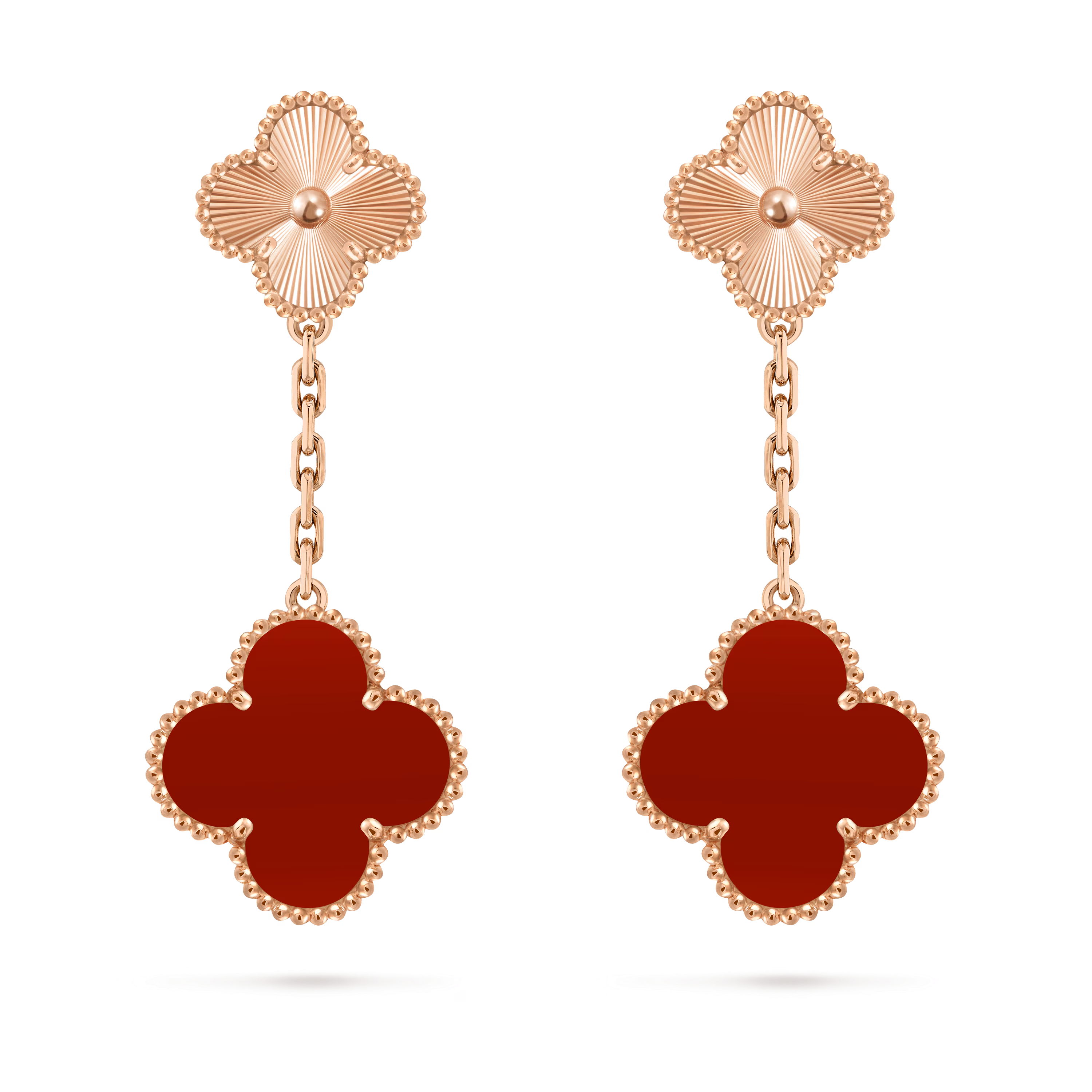 Magic Alhambra Earrings, 2 Motifs – 18K Rose Gold & Carnelian**