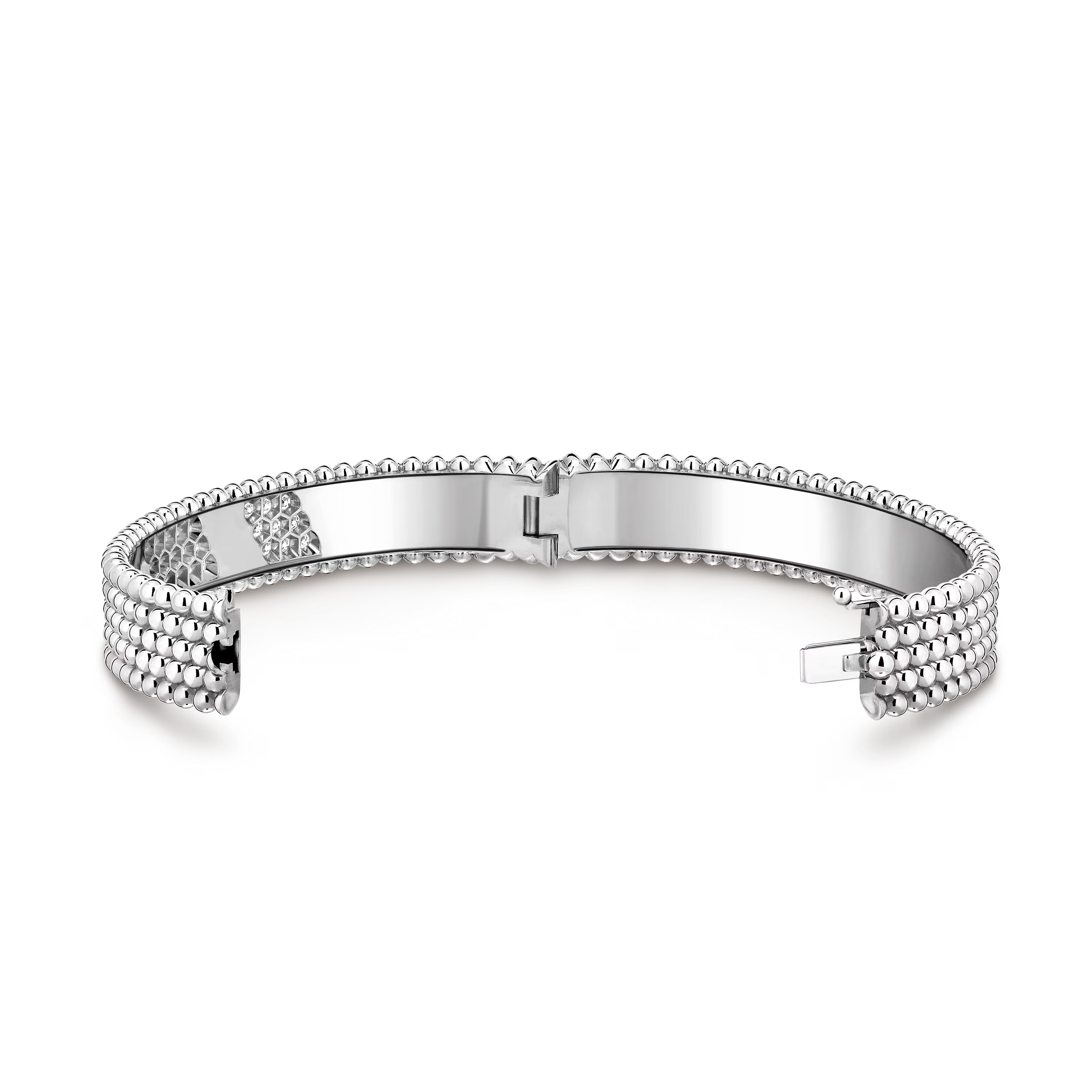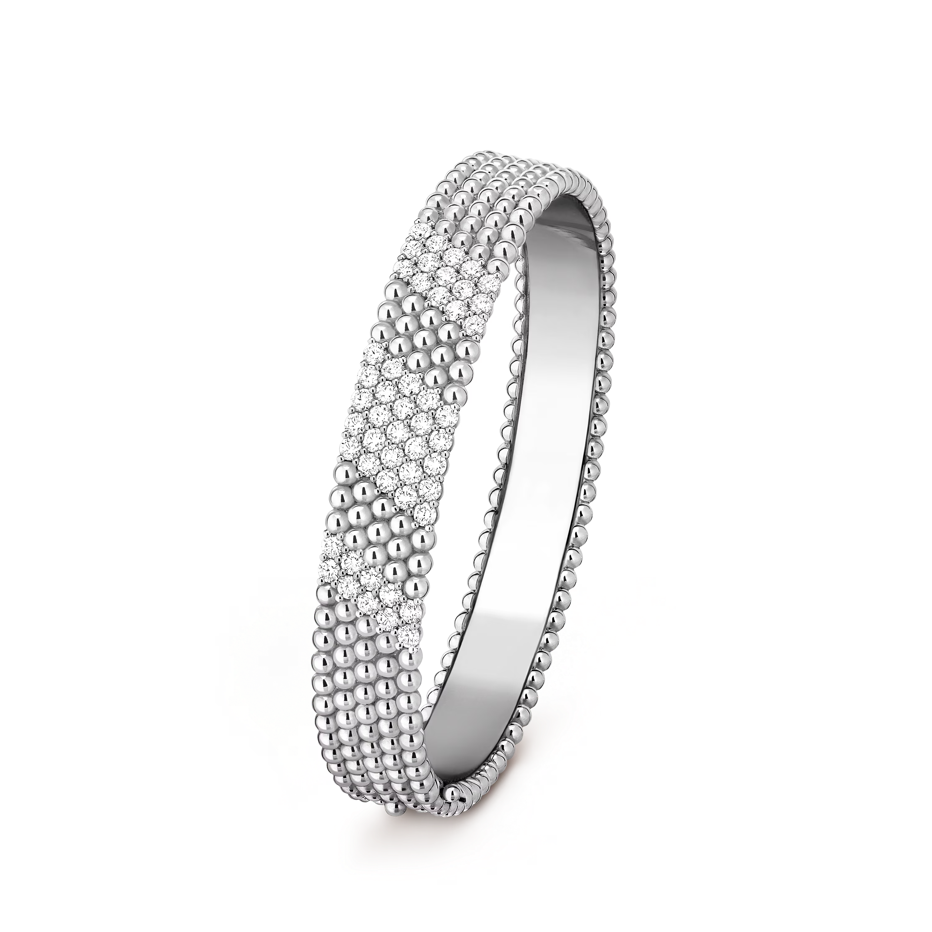 Designed for comfortable, fluid wear, the bracelet naturally adapts to the wrist’s movements. It can be worn alone as a statement piece or paired with other Perlée or diamond creations for an effortlessly elegant, layered look suitable for both day and evening wear.