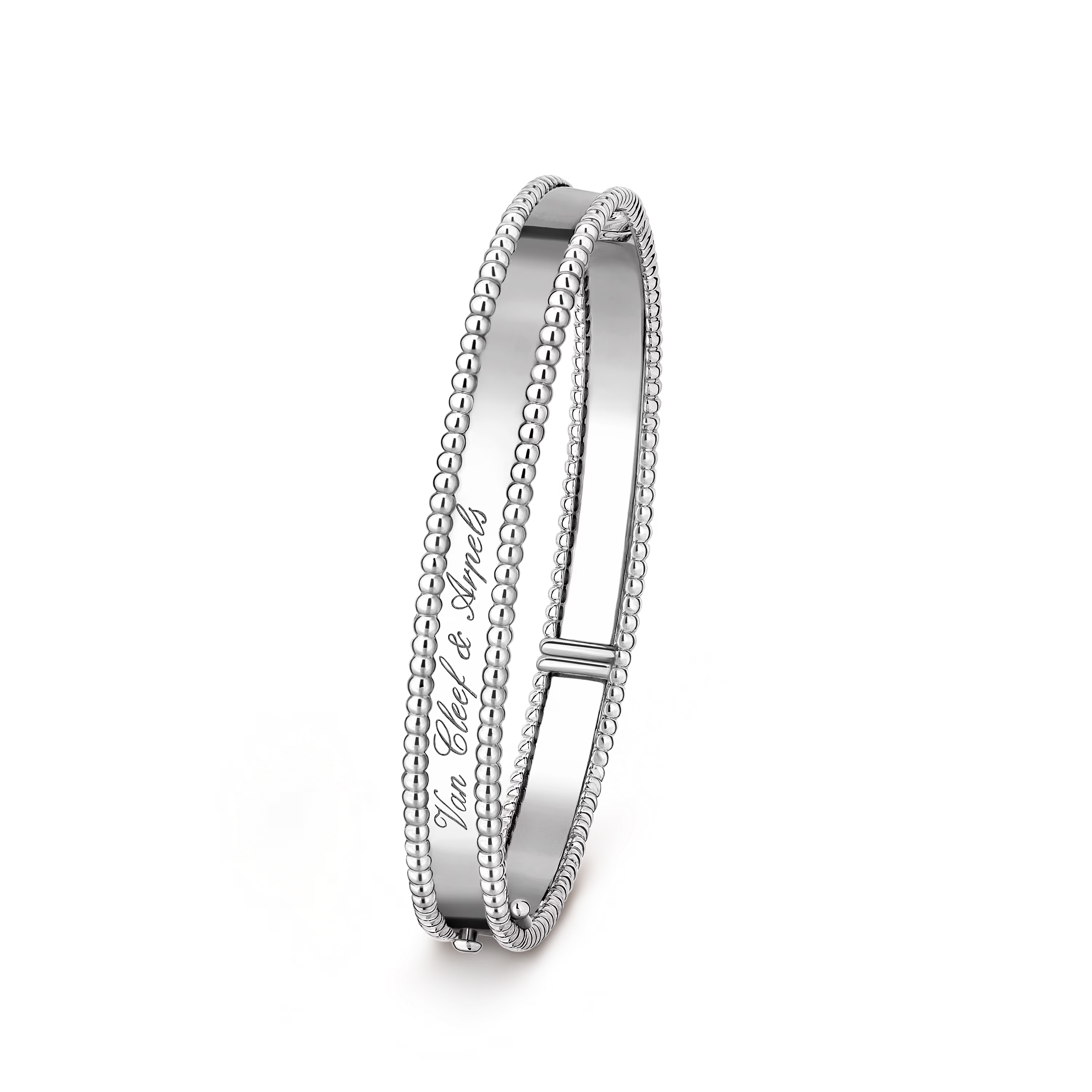 Designed for everyday elegance, the bracelet slides comfortably onto the wrist and adapts fluidly to movement. It may be worn alone as a minimalist statement or stacked with other Perlée creations for a modern, layered look.