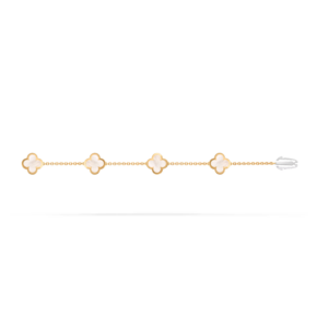 This bracelet features four Pure Alhambra motifs, evenly spaced along the wrist to create a sense of perfect symmetry. The uncluttered design emphasizes the purity of form, allowing the iconic shape to stand out with quiet confidence.