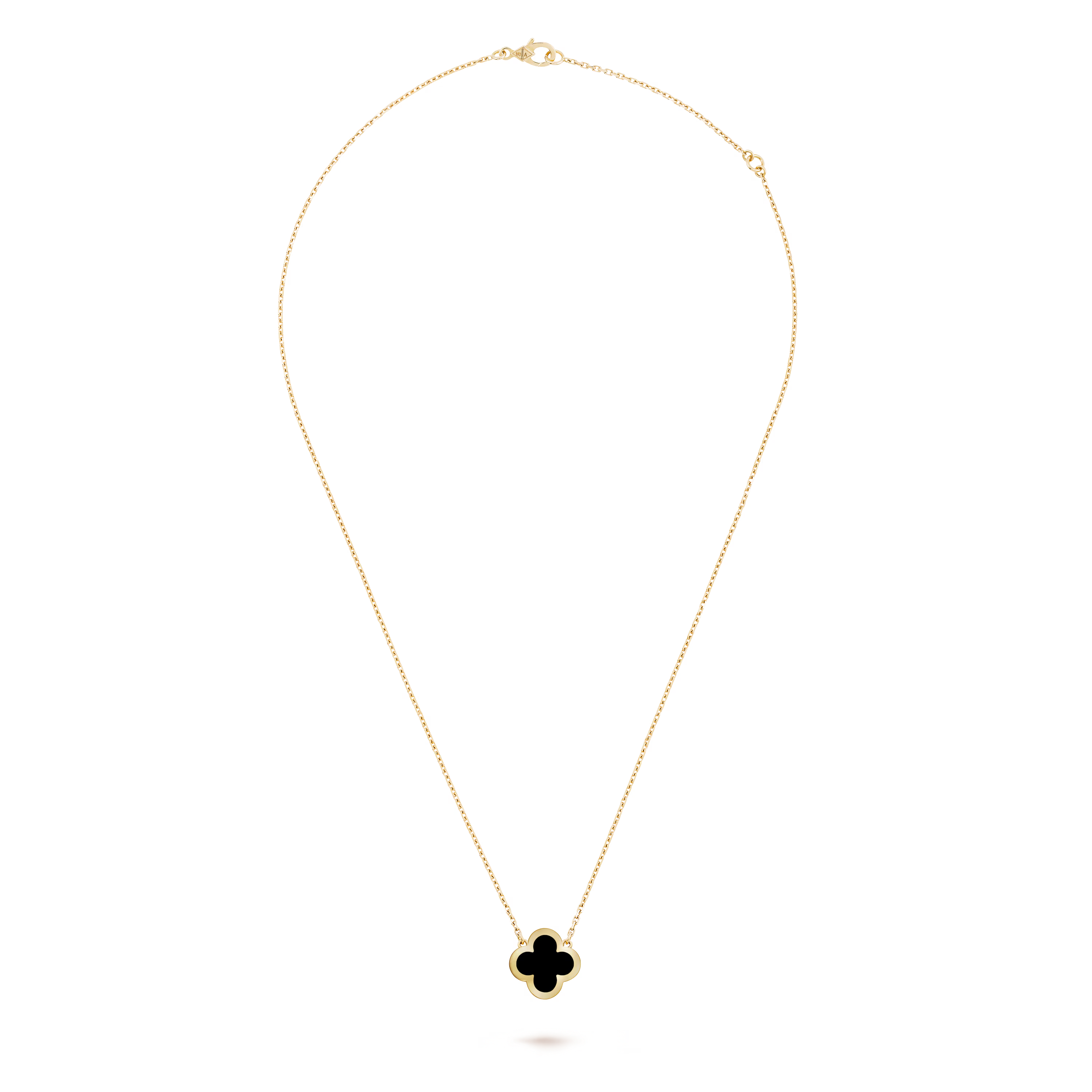 Gracefully suspended from a matching yellow-gold chain, the pendant sits elegantly at the neckline, making it perfect for everyday confidence or chic evening style. Whether worn alone or paired with other Alhambra creations, it brings depth, sophistication, and a touch of modern edge.