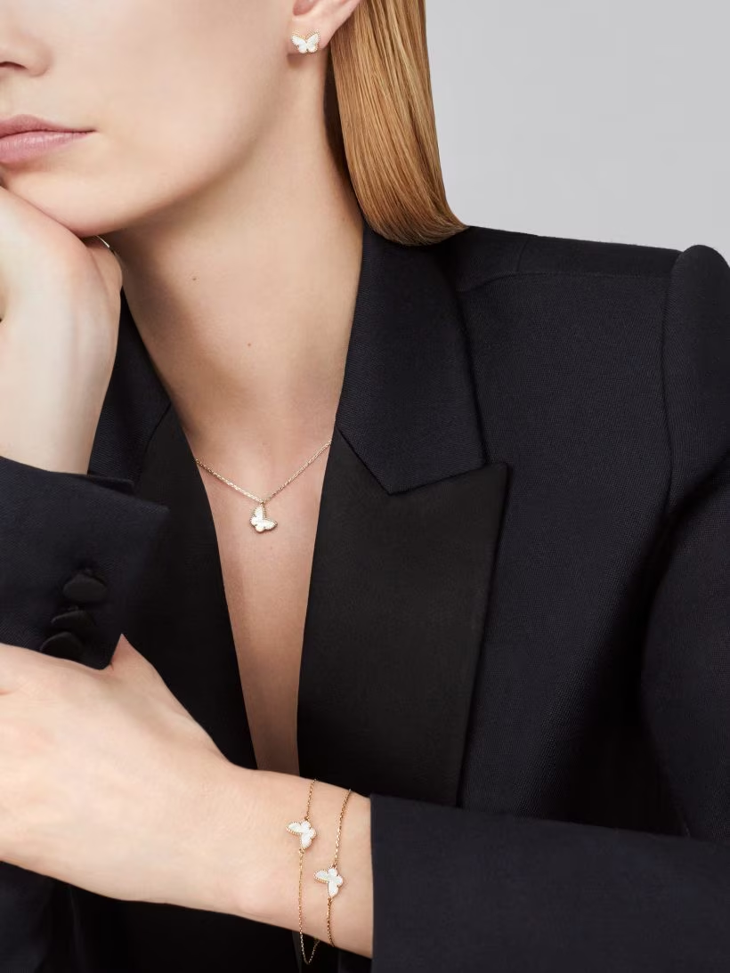 The Van Cleef & Arpels Sweet Butterflies Pendant Necklace features a delicate butterfly design from the Maison’s Sweet Butterflies collection. Crafted in 18K gold, this pendant symbolizes grace, transformation, and elegance, reflecting Van Cleef & Arpels’ exceptional craftsmanship.