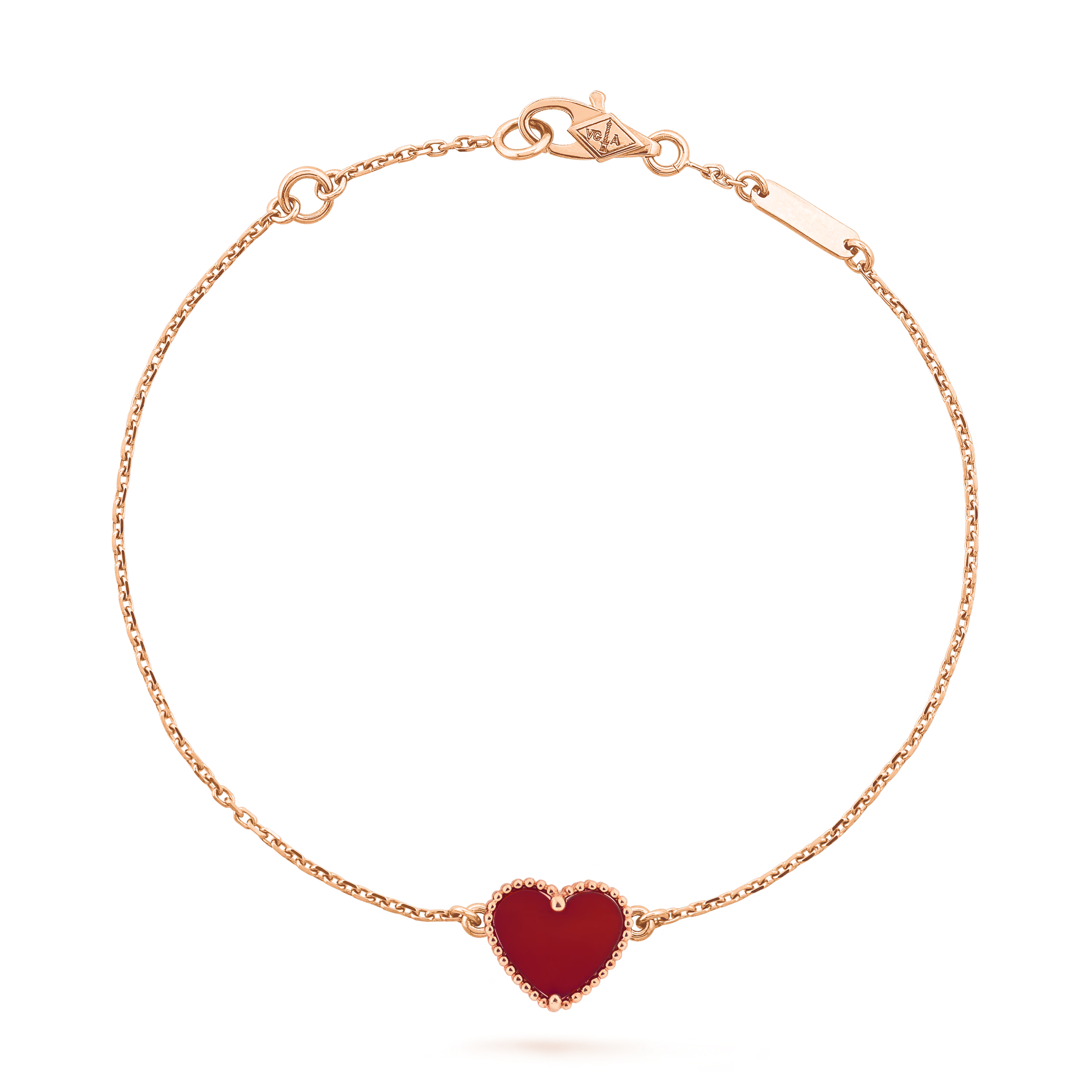 This bracelet features refined heart-shaped motifs, thoughtfully arranged along the chain. The soft silhouette of each heart creates a harmonious and feminine rhythm on the wrist, offering a subtle yet expressive statement.