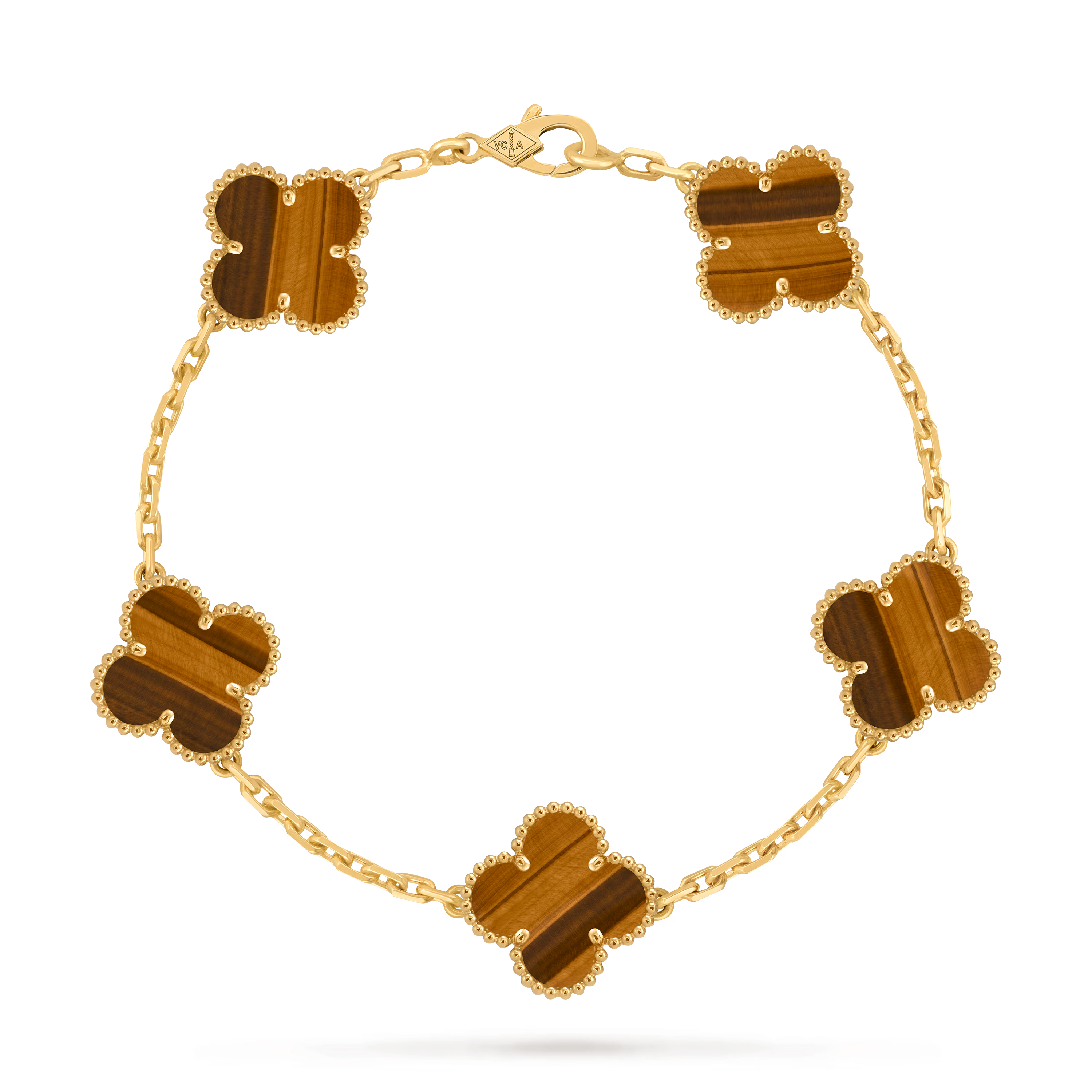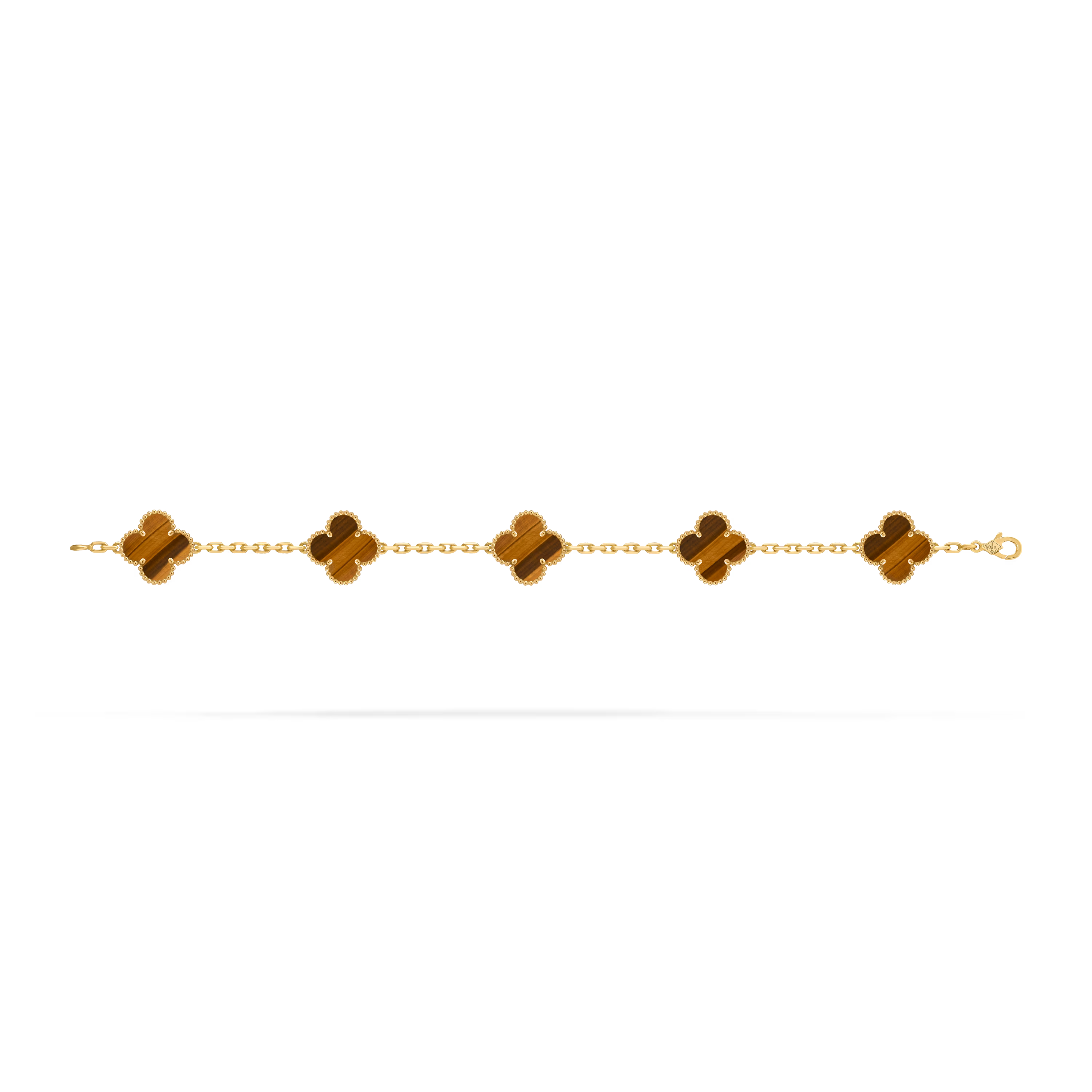 Each four-leaf clover motif is framed by the collection’s iconic beaded edge. This distinctive detail adds depth, texture, and a sculptural dimension, enhancing the bracelet’s instantly recognizable character.