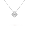 Suspended from a matching white gold chain, the pendant sits elegantly along the neckline, offering a touch of quiet luxury. Whether worn alone or paired with other Alhambra creations, it remains a graceful symbol of harmony and timeless beauty.