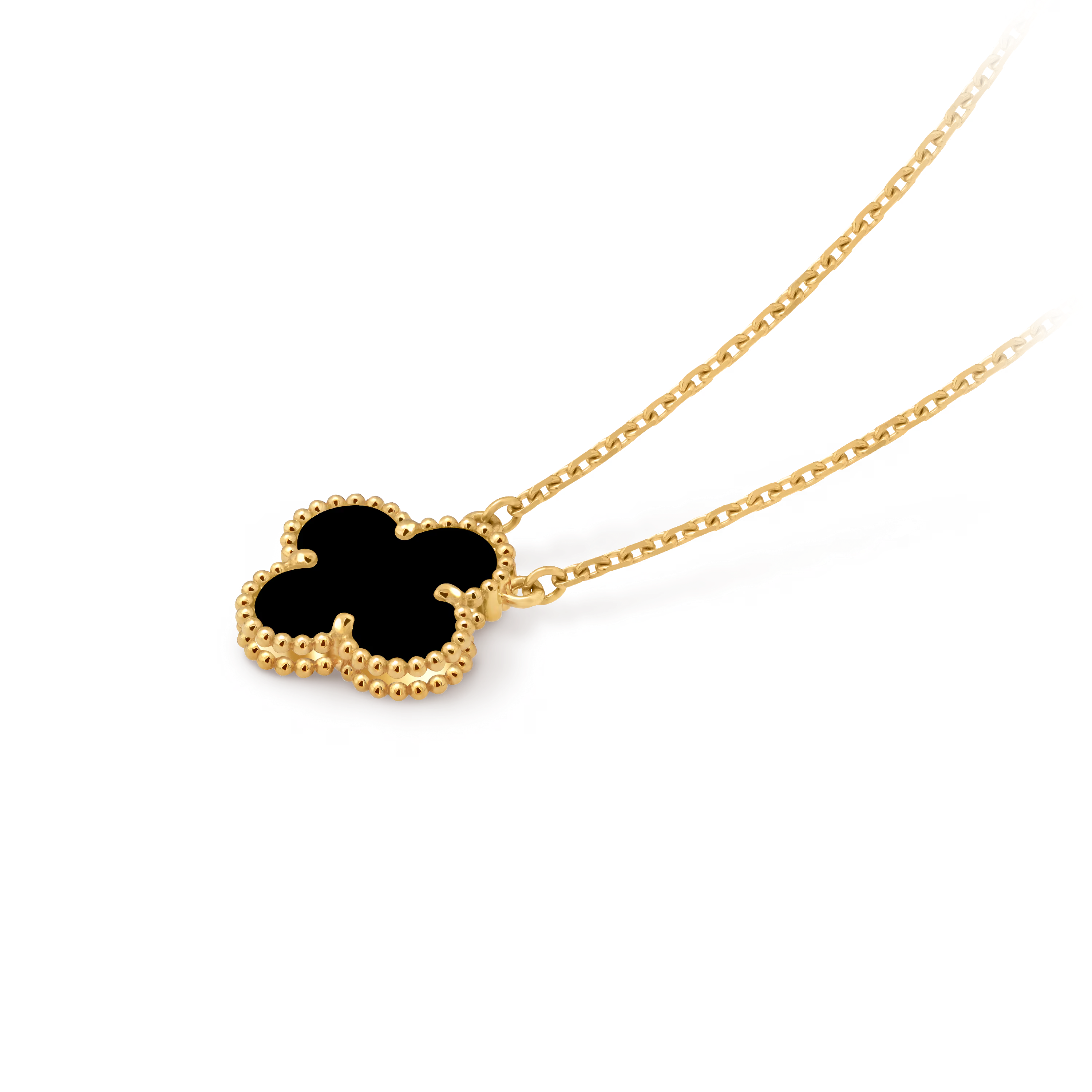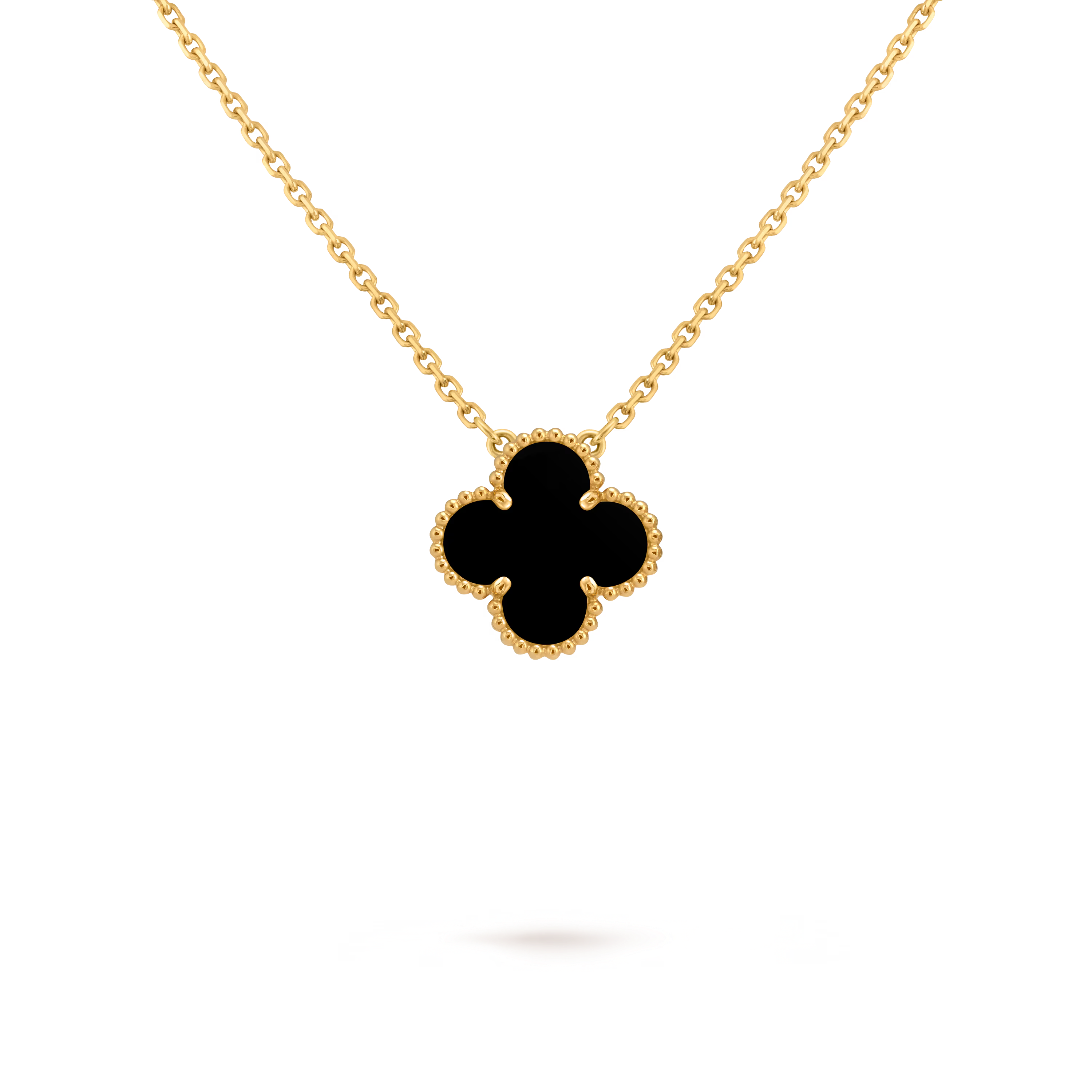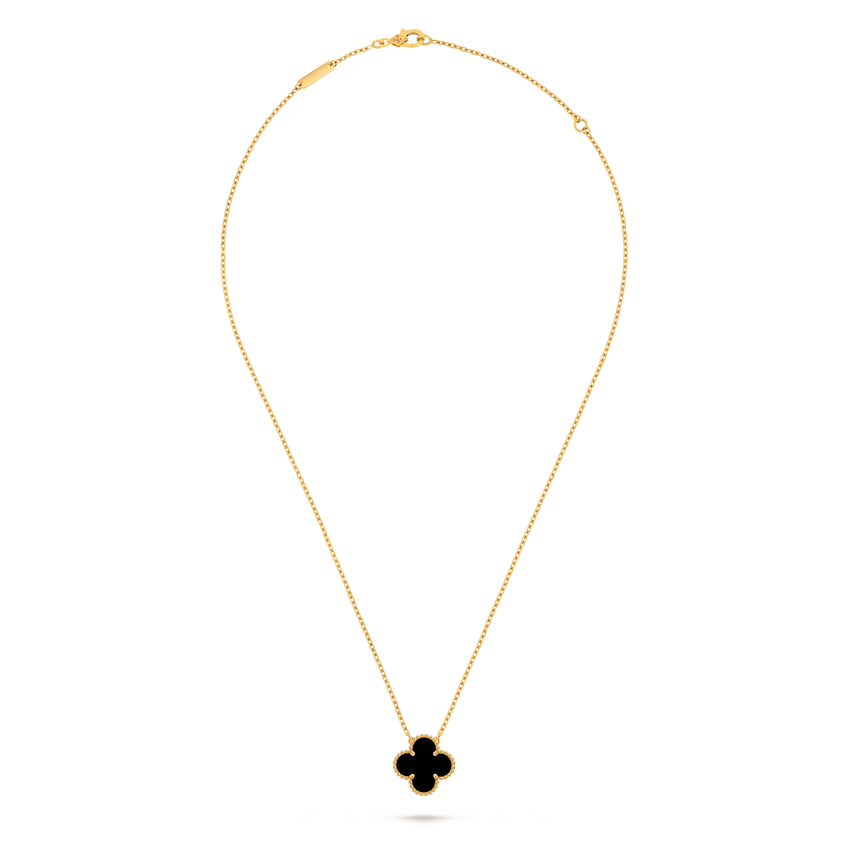 Perfectly proportioned and instantly recognizable, the pendant features the classic Alhambra shape—soft curves, balanced symmetry, and an aura of understated sophistication. Each motif is carefully selected and crafted to highlight the natural beauty of its material.