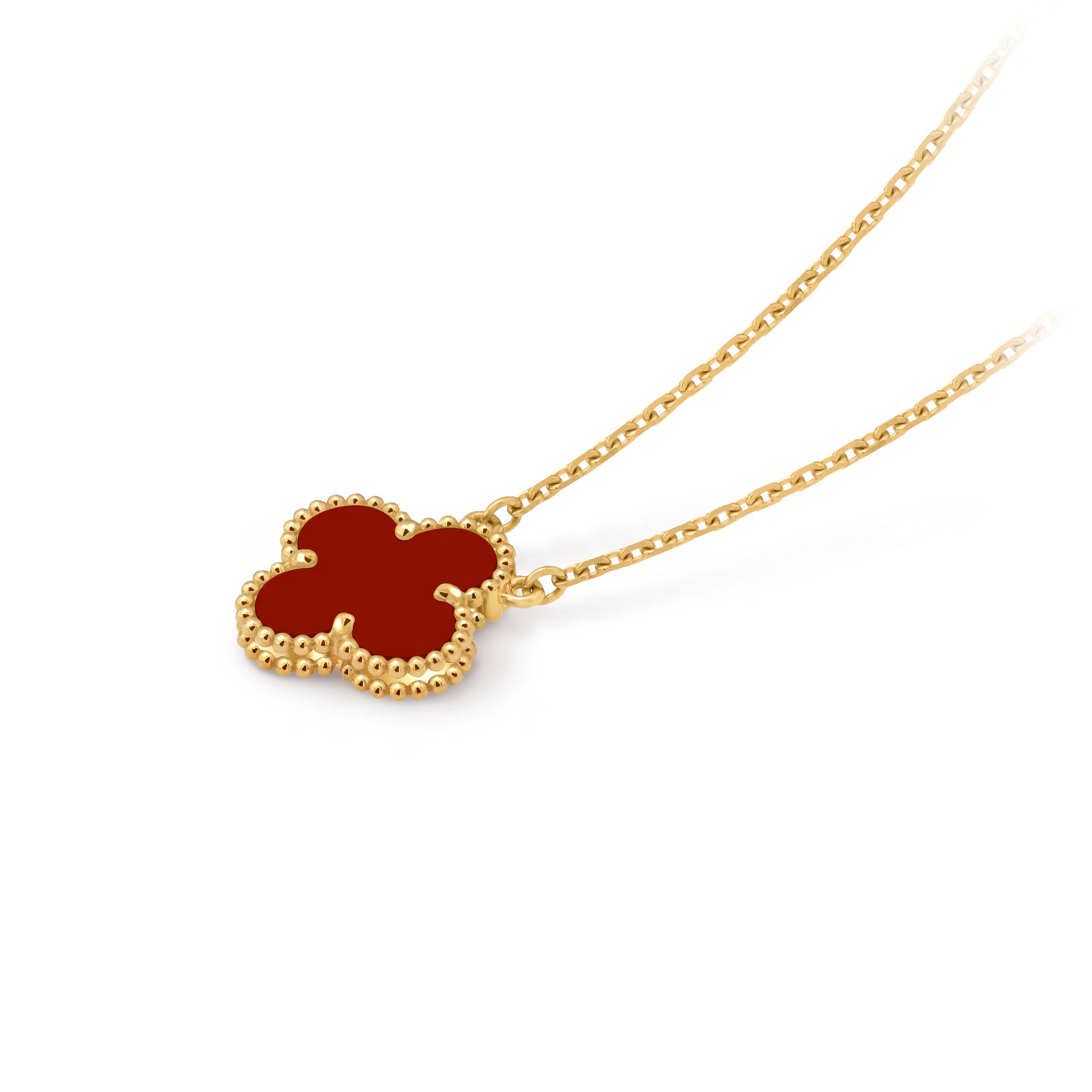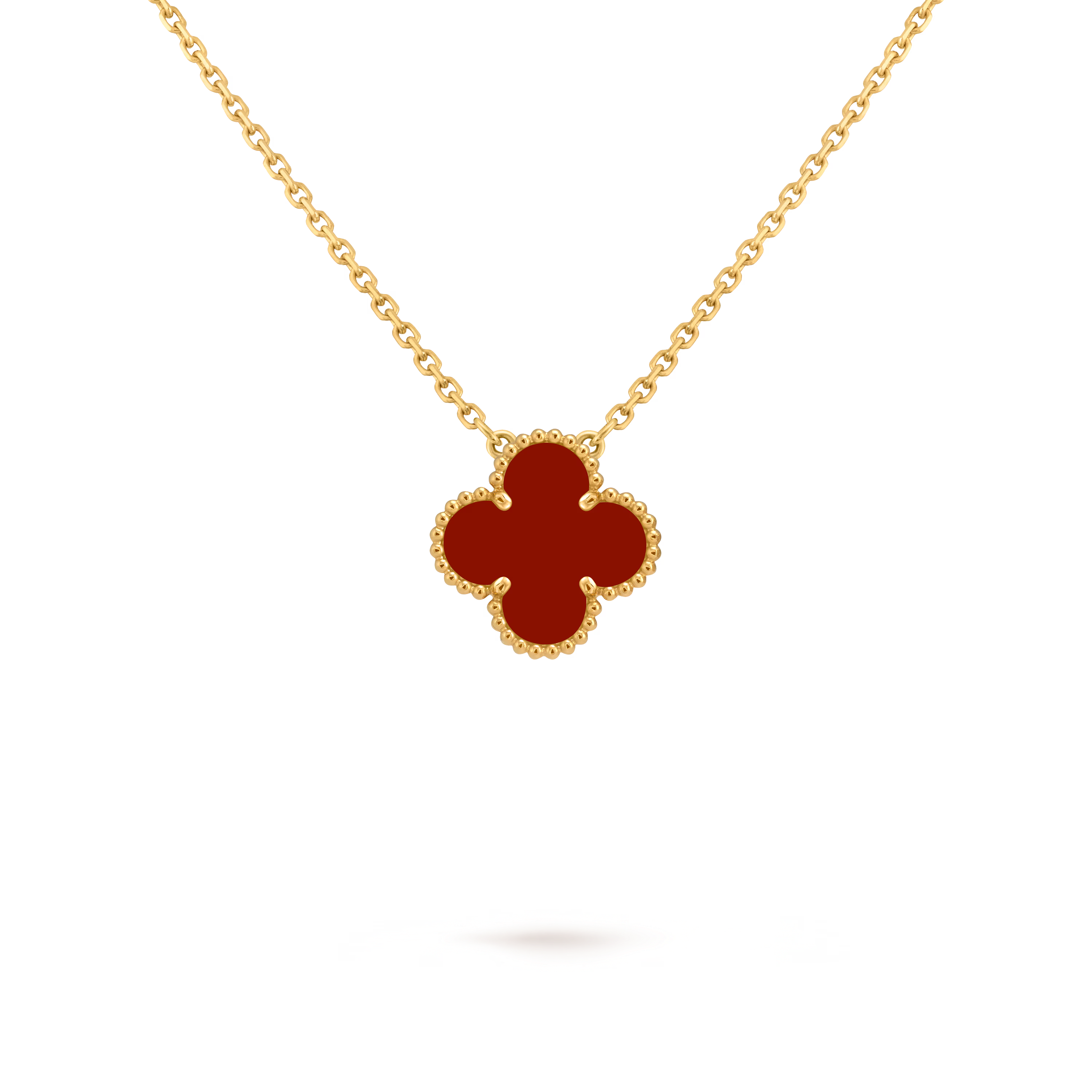 Perfectly proportioned and instantly recognizable, the pendant features the classic Alhambra shape—soft curves, balanced symmetry, and an aura of understated sophistication. Each motif is carefully selected and crafted to highlight the natural beauty of its material.