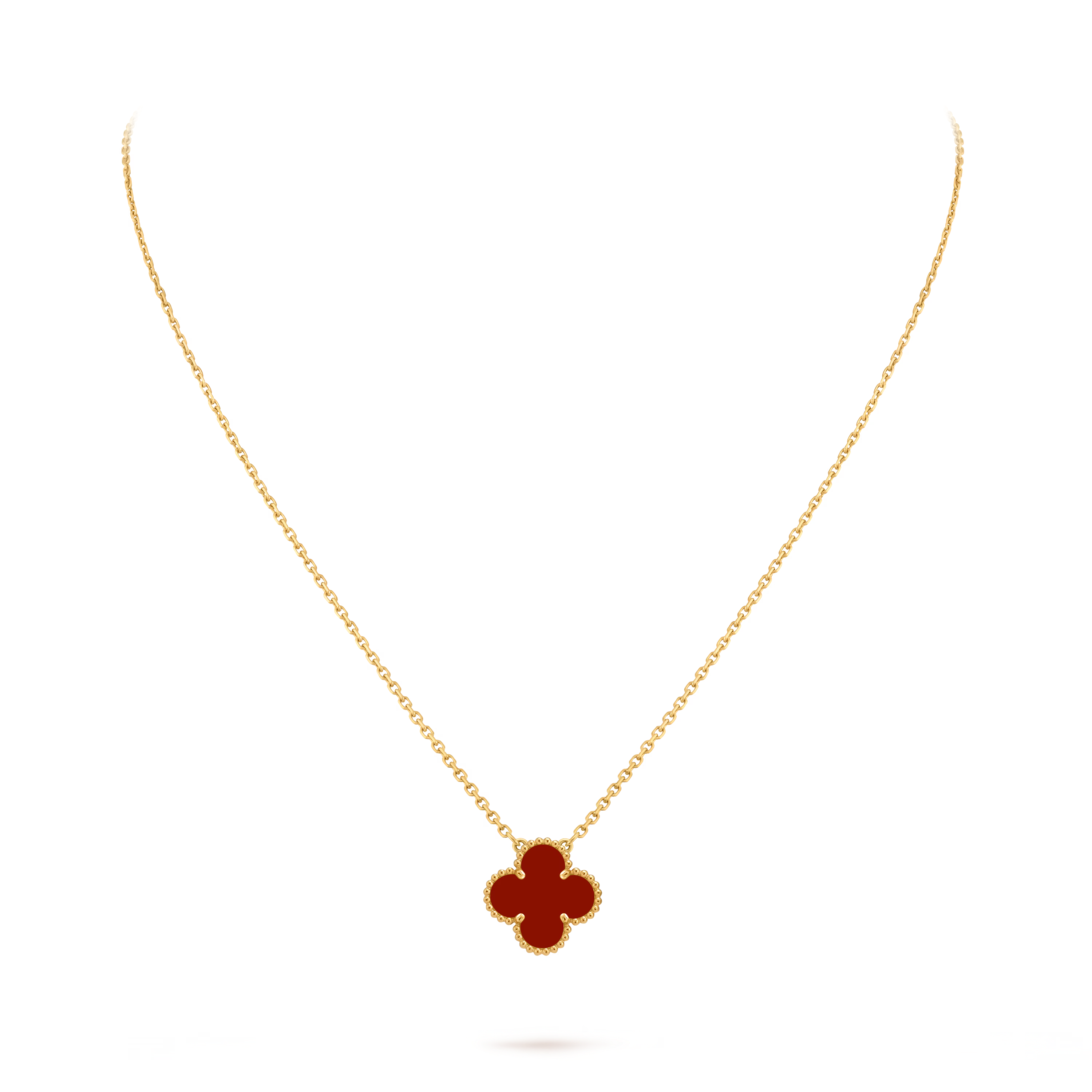 Every Vintage Alhambra pendant reflects exceptional attention to detail: from the polished finish of the precious metal to the precise setting of the motif. The piece captures the Maison’s commitment to artisanal excellence and timeless appeal.
