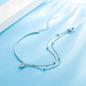 925 Sterling Silver Star Bracelet Sparkling Zircon Double Layer Round Bead Bracelet Exquisite Jewelry Birthday Gift